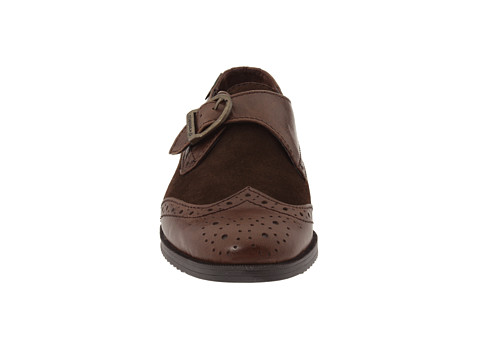 La combinación de piel y gamuza superior con una correa ajustable empeine y hebilla.
